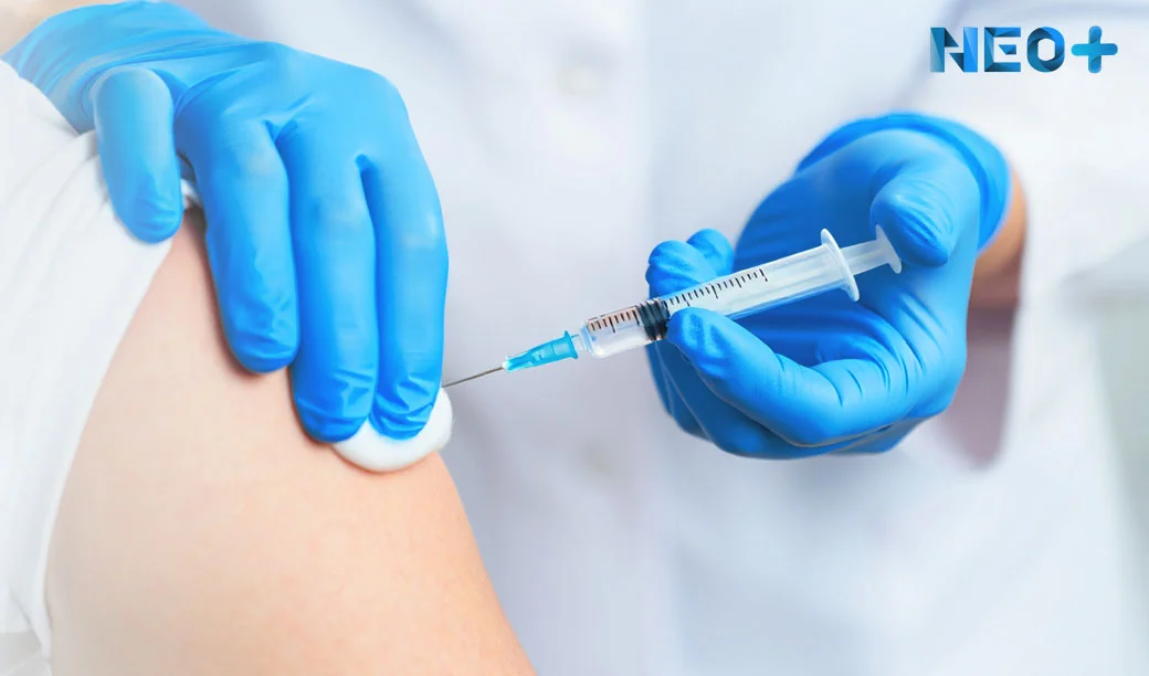 Врач ставит укол в плечо пациенту